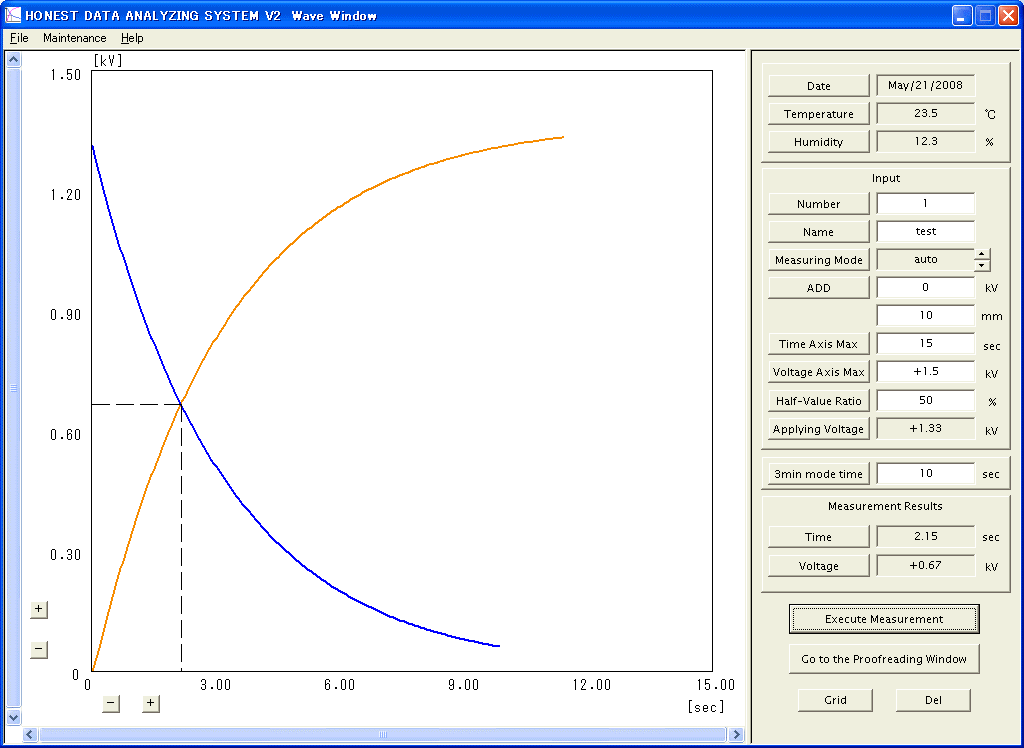 2.測試數(shù)據(jù)的保存:本機具有自動測量靜電衰減曲線,自動計算出電壓衰減的半衰期,自動保存至電腦的HDD系統(tǒng)。